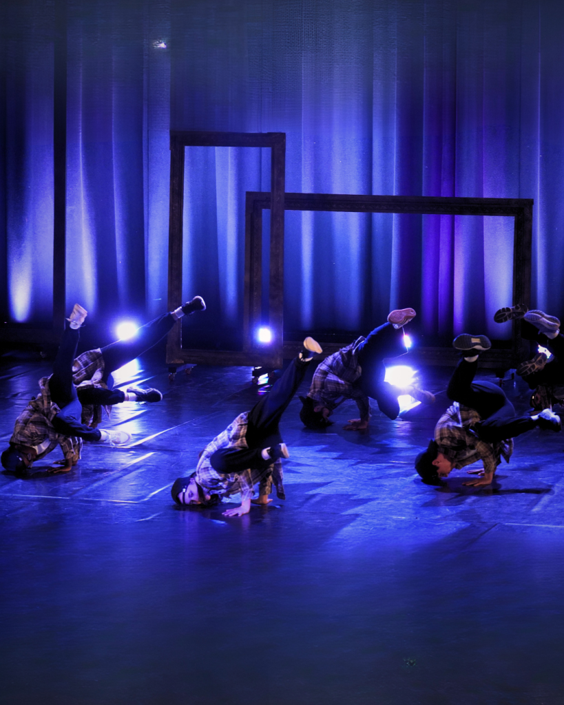‘Pictures at an Exhibition’ took a series of fine art masterpieces as starting points for depictions of stories and emotions, with famous works such as ‘Mona Lisa’, ‘Guernica’, ‘Starry Night’ and ‘Man in a Bowler Hat’ inspiring beautiful and dynamic responses. The set involved six large, gilt picture frames, which house dancers who emerged to tell their stories. Additionally, a further three picture frames housed projections, first of the famous artworks, but then cross-fading to live-streamed footage of the dancers on the stage! The overall effect was to merge great artworks with great dance to reveal the way all artists approach themes and messages using their own special forms of expression.