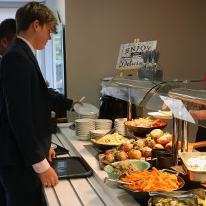 Whether it is breakfast, lunch, or dinner, the food counters are always abundant with varied dishes to suit everyone’s tastes. Lunch includes a choice of three hot main courses, accompanied by various side dishes. The extensive salad bar is always imaginative, in addition to freshly made soup accompanied with home-baked bread. Students can enjoy options from the jacket potato and pasta bar, which features a variety of topping daily. The dessert counter (a highlight amongst the pupils!) showcases homemade hot and cold treats.